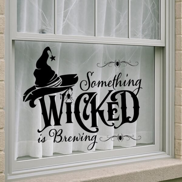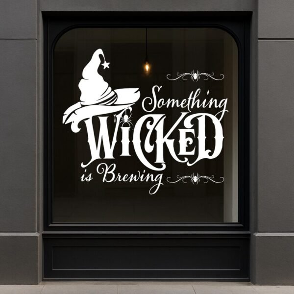 Something Wicked is Brewing Decal – Halloween Window Decoration, Witch Hat Vinyl Sticker, Spooky Fall Decor for Glass or Mirror