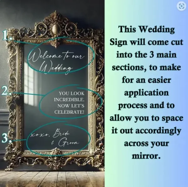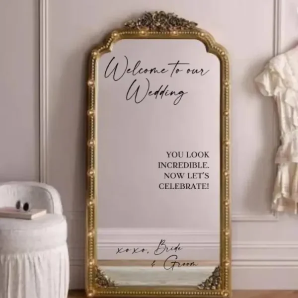 Be the first to review “Wedding Mirror Decal + FREE Just Married Vinyl | Personalized Welcome Sign for Ceremony or Reception | Modern Wedding Decor for Glass Mirror”