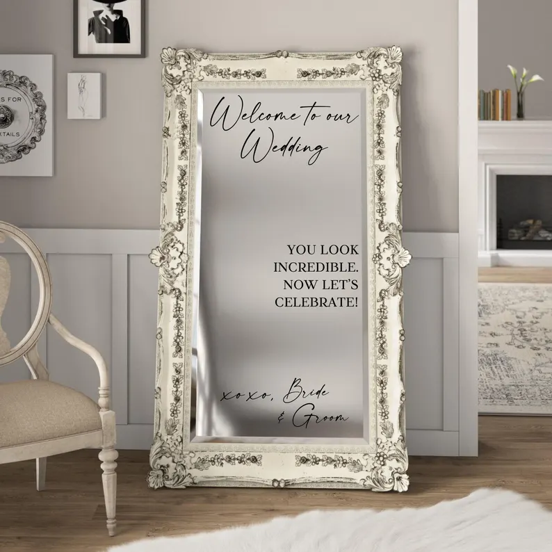 Be the first to review “Wedding Mirror Decal + FREE Just Married Vinyl | Personalized Welcome Sign for Ceremony or Reception | Modern Wedding Decor for Glass Mirror”